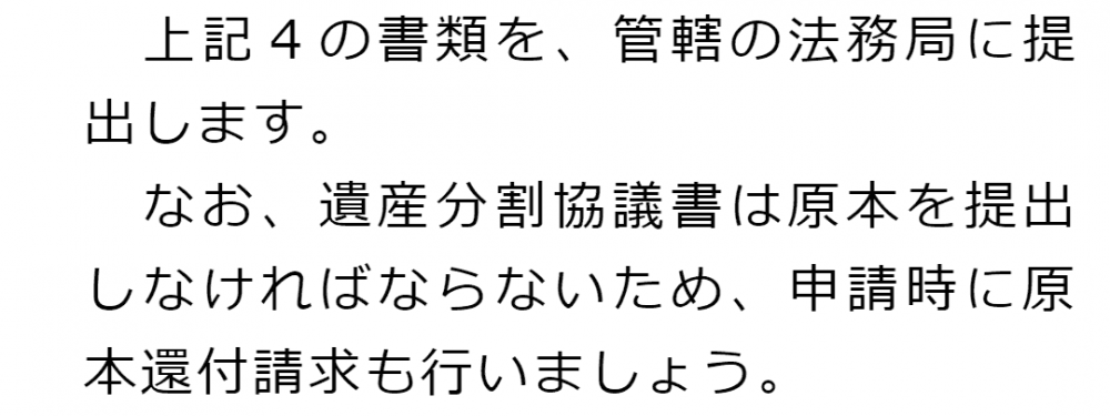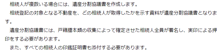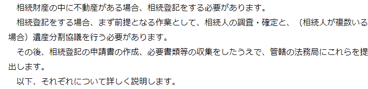 相続登記の手続きの流れ1 相続登記の手続きの流れ2 相続人の調査・確定3 遺産分割協議書の作成4 相続登記の申請書の作成、必要書類等の収集5 管轄の法務局へ書類提出 1 相続登記の手続きの流れ2 相続人の調査・確定3 遺産分割協議書の作成4 相続登記の申請書の作成、必要書類等の収集5 管轄の法務局へ書類提出